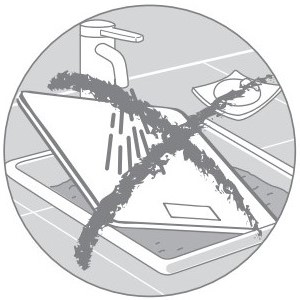 Ne koristite žičani sunđer ili abrazivni prah. Nikad ne uranjajte uređaj u vodu.