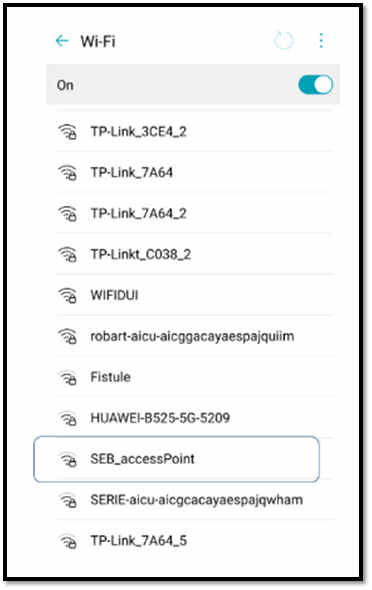 4) Idite u postavke telefona i potvrdite da vidite Wi-Fi mrežu pod nazivom 'SEB_accessPoint' (snimak ekrana u nastavku).