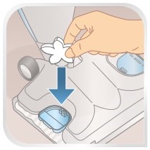 Pre uključivanja aparata, stavite tabletu u predviđeni prostor, a zatim sipajte kap eteričnog ulja (maksimalno jednu kap ulja po tableti jednom nedeljno) direktno na tabletu (vodite računa da ne natopite tabletu). Zatim ponovo zatvorite poklopac.